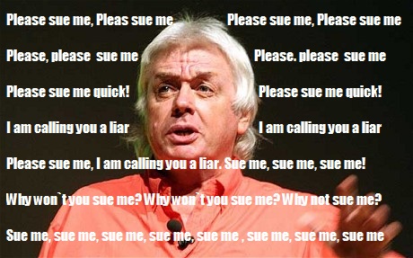 Saw a very large story on the front page of the Daily Mirror indicating McAlpine is planning to sue 10,000 Twitterati. I find it very hard to understand why he goes on about suing all these people, why does he not go ahead and sue David Icke who is obviously crying out for McAlpine to sue him?